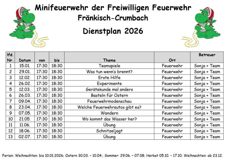 Dienstplan Minifeuerwehr 2026