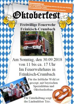 Die Feuerwehr feiert in diesem Jahr ihr Oktoberfest am Sonntag, den 30. September 2018.