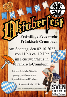 Vorbestellungen können bis zum Freitag, den 23. September unter Angabe ihres vollständigen Namens und der Adresse unter: oktoberfest@feuerwehr-fraenkisch-crumbach.de