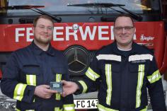 Nachdem Andreas Löhe über drei Wochen den Grundlehrgang besucht hat und diesen mit Erfolg abgeschlossen hat, konnte Gemeindebrandinspektor Stephan Fehr ihm seinen Pager übereichen.