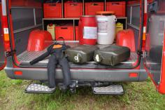 So stellte sich das letzte Übungsszenario der Einsatzabteilung dar. Eine Person mit Kind wollte nur schnell die alten Kanister und Flaschen mit Resten in einer abgelegenen Landschaft entsorgen.