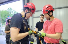 Was machen die Feuerwehleute, wenn es hoch hinaus geht? Richtig … Sie schützen sich gegen Absturz. Und das machen sie mit einer Absturzsicherung.