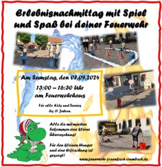 Am Samstag, den 07. September laden wir alle Kinder und Jugendlichen bis 17 Jahren ein, mit der Feuerwehr ein paar spannende Stunden zu verbringen. Neben Spiel und Spaß haben wir auch eine Mal- und Bastelecke für euch vorbereitet.