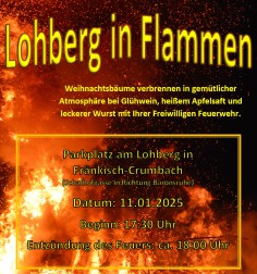 Am Samstag, den 11.01.2025 findet wieder das Weihnachtsbaumverbrennen der Freiwilligen Feuerwehr statt, zu dem wir die Bevölkerung herzlich einladen.