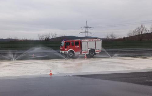 Auf der ADAC Sicherheitstrainingsanlage für LKW in Gründau lernen die Maschinisten an den eigenen Löschfahrzeugen, wie sich diese bei Nässe oder Glatteis verhalten. Vor allem das schnelle Ausweichen und Bremsmanöver auf nassen Straßen wurde trainiert. Da viele Einsatzkräfte nur im Feuerwehrdienst LKWs fahren ist dieses Training eine gute Gelegenheit um sich mit dem eigenen Fahrzeug noch vertrauter zu machen.