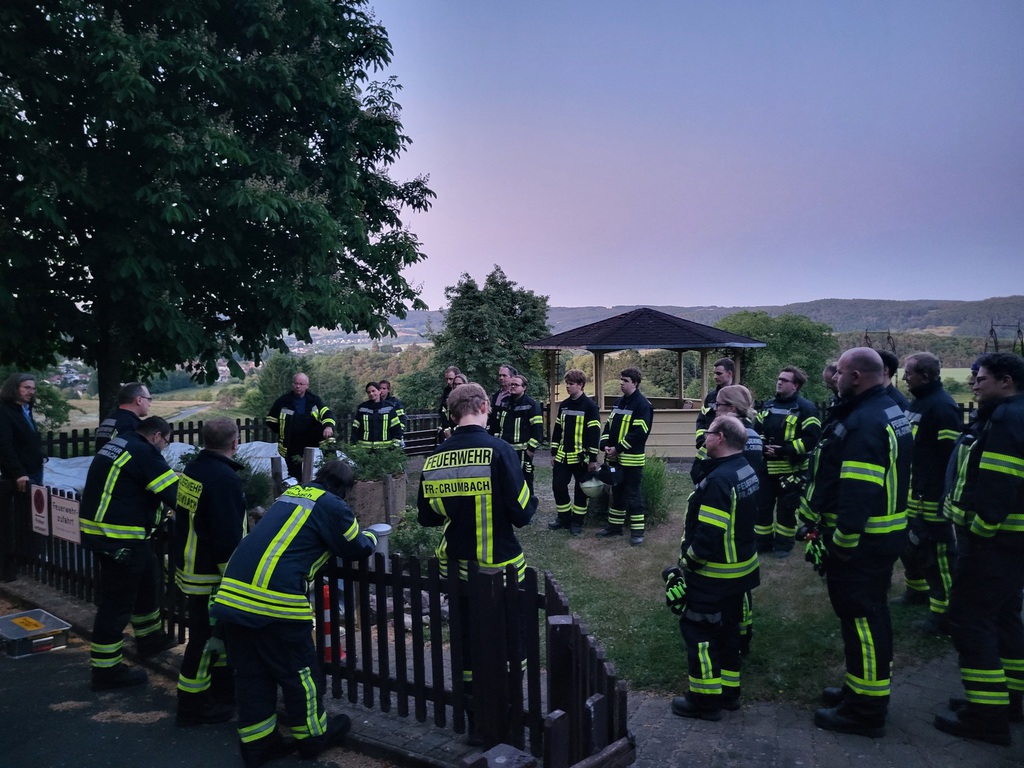 Das ELW-Team dokumentierte den Einsatz und stellte eine Kräfteübersicht auf. Nachdem alle vermissten Personen gerettet und das angenommene Feuer gelöscht war konnte Gemeindebrandinspektor Stephan Fehr die Übung beenden und zeigte sich bei der Übungsnachbesprechung zufrieden mit dem Übungsverlauf. Zudem bedankte er sich bei Georg Beeh für die Bereitstellung des Übungsobjektes und die kleine Erfrischung, die er für die Übungsteilnehmer bereitstellte. Geschäftsführer Georg Beeh bedankte sich für den Einsatz der Feuerwehr und die gute Zusammenarbeit.