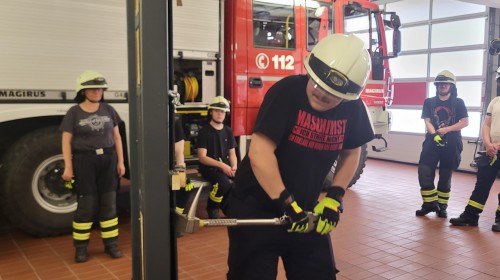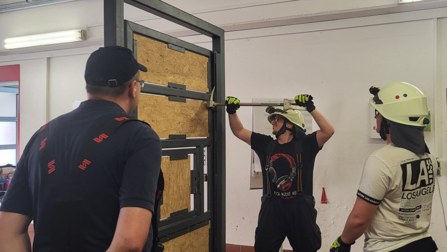 Die Teilnehmer setzten das Halligan-Tool an und gaben das Kommando „Schlag“ damit der Truppmann das Halligan-Tool in den Türspalt hineintreiben kann. Mit einem Ruck und viel Kraft wurde die Tür im Anschluss aufgebrochen.