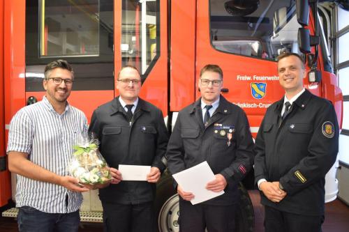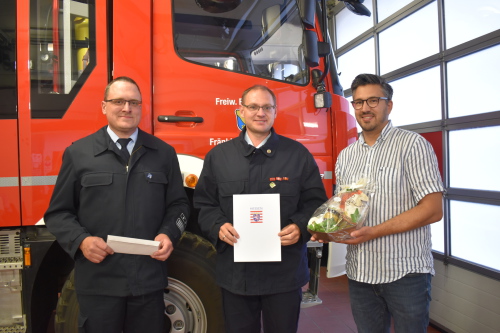 Eine Jahreshauptversammlung ist ein angemessener Anlass um verdienten Mitgliedern Danke zu sagen. Den Ehrungsteil begann Bürgermeister Matthias Horlacher, der sich bei dem frisch wiedergewählten stellvertretenden Gemeindebrandinspektor Marcel Freitag mit einer Anerkennungsprämie des Landes Hessen für 20 Jahre Mitgliedschaft bedankte.