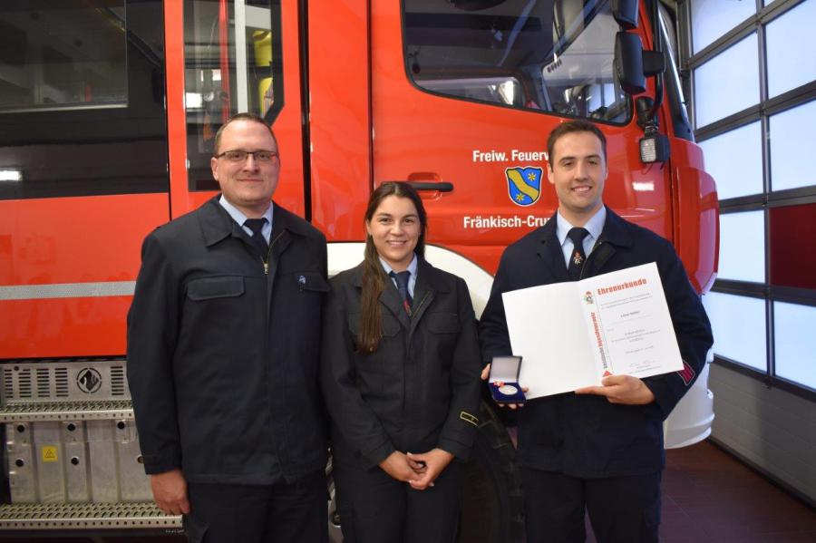 Im Anschluss konnte Kreisjugendfeuerwehrwartin Magdalena Nöske den langjährigen Jugendfeuerwehrbetreuer Lukas Vetter für sein Engagement in der Jugendarbeit mit der Florian-Medaille der Hessischen Jugendfeuerwehr in Silber ehren.