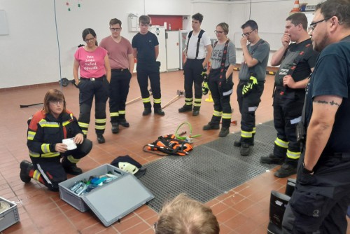 Daraufhin folgte eine Wiederholung zu den Handwerkszeugen, deren Einsatzgebieten und der notwendigen Schutzausrüstung. Wesentliche Merkmale der unterschiedlichen Werkzeuge wurden hier den Einsatzkräften erklärt und deren Einsatzgebiete gezeigt.