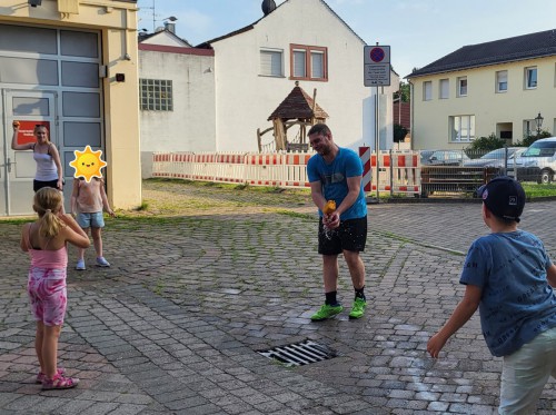 Es folgte eine ausgiebige Trinkpause, die an dem Tag nötig war. Dann folgte ein besonderes Ringewerfen, das schwerer war als geplant. Aber unsere jüngsten Brandschützer haben viel Geschick bewiesen und so manchen Treffer gelandet.