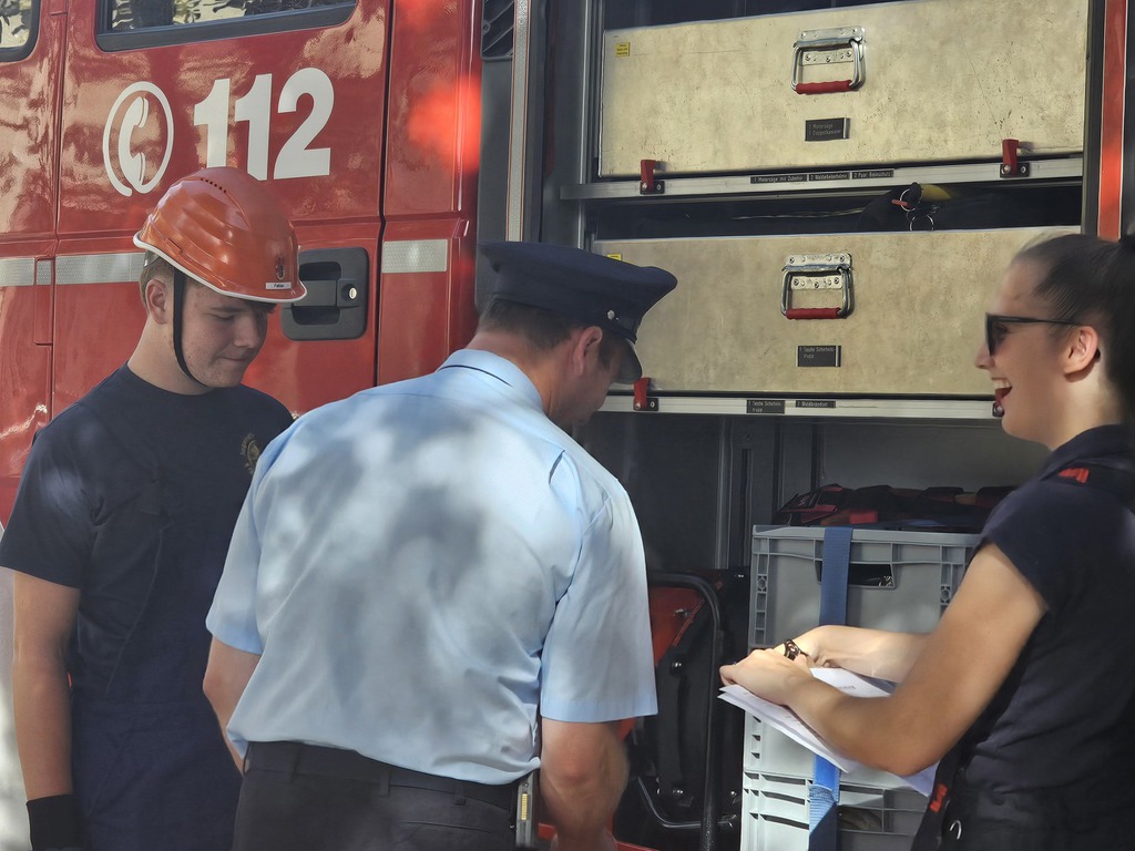 Die Jugendflammenteilnehmer mussten außerdem eine Unfallstelle ordnungsgemäß absichern mit allem was die Feuerwehr hier zur Verfügung hat.